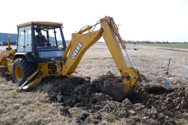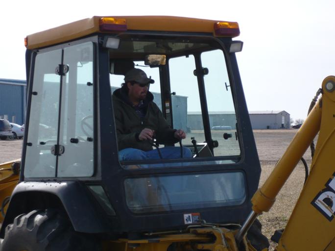 Other Items of Interest: Though all our water towers are located in Harvey and Marion Counties they do serve our customers in Butler and Sedgwick County. KDHE estimates the population served by our water district to be over 3000. This includes the Cities of Elbing and Walton population as they get their water from us. Links: Images: Mike Entz, head of our Maintenance Department, operates the backhoe. We have our own backhoe that is used to change out meters wells, repair water leaks, and repair small water leaks if they are within 10 feet of the meter well for customers. If the leak is on the customers side of the meter within a 10 foot area of the meter well we will fix the leak and then sent a bill to the customer for the repairs.